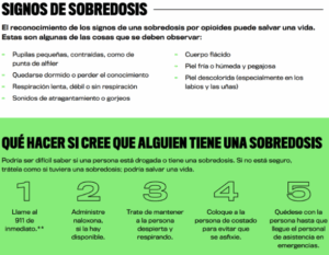 •Materiales educativos para reconocer una sobredosis y administrar la naloxona.